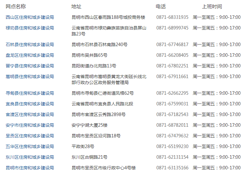 昆明各區(qū)縣住房和城鄉(xiāng)建設(shè)局地址及聯(lián)系方式