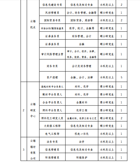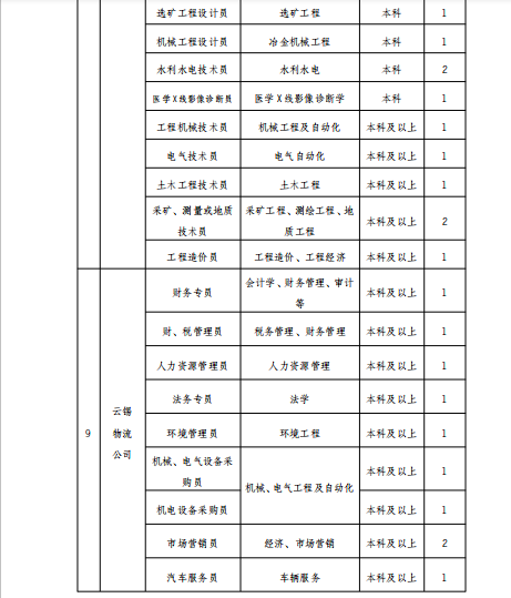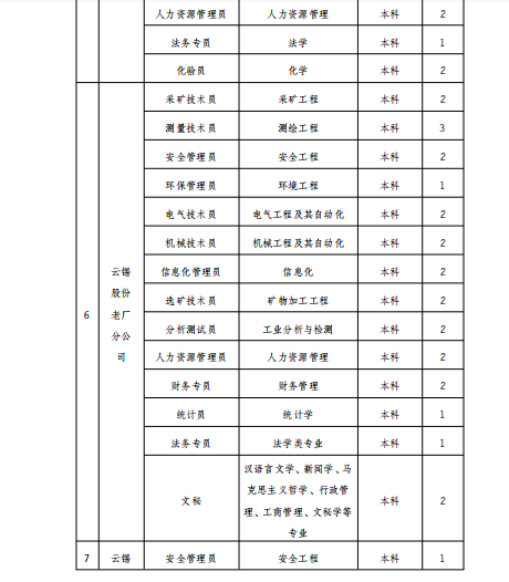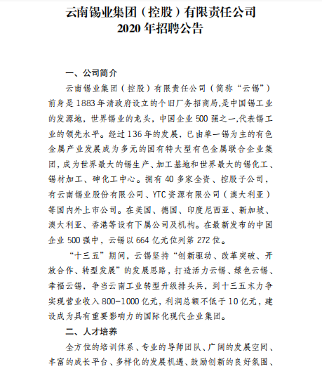云南錫業(yè)集團(控股)有限責任公司2020年招聘公告