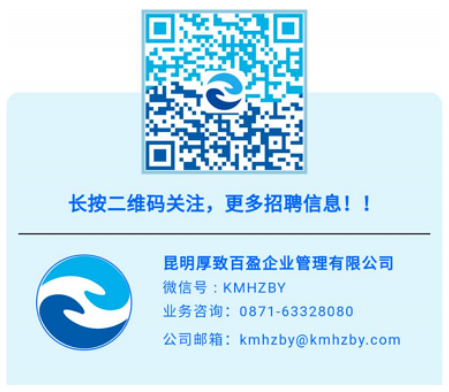 本公告招聘流程順序根據(jù)實際工作調(diào)整,由昆明厚致百盈企業(yè)管理有限公司負責(zé)解釋。