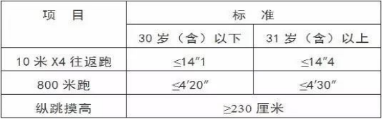 體能測試參照《公安機關(guān)錄用人民警察體能測評項目和標準(暫行)》進行。具體標準如下:
